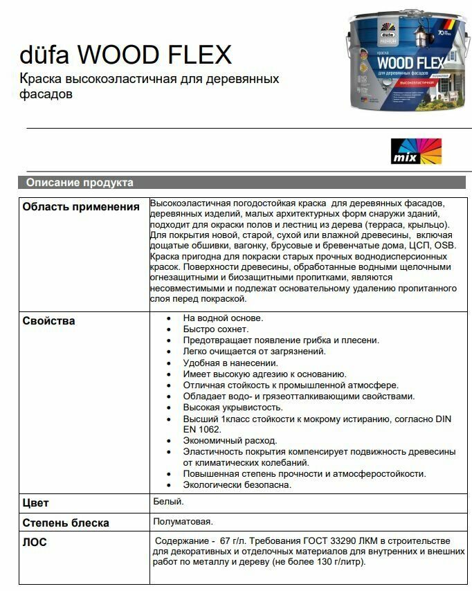 "DufaPremium" Вододисперсионная краска WOODFLEX высокоэластичная для деревянных фасадов 0,9л