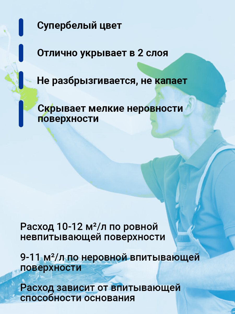 Краска В/Д для потолка супербелая профи 1,8л/2,7кг текс