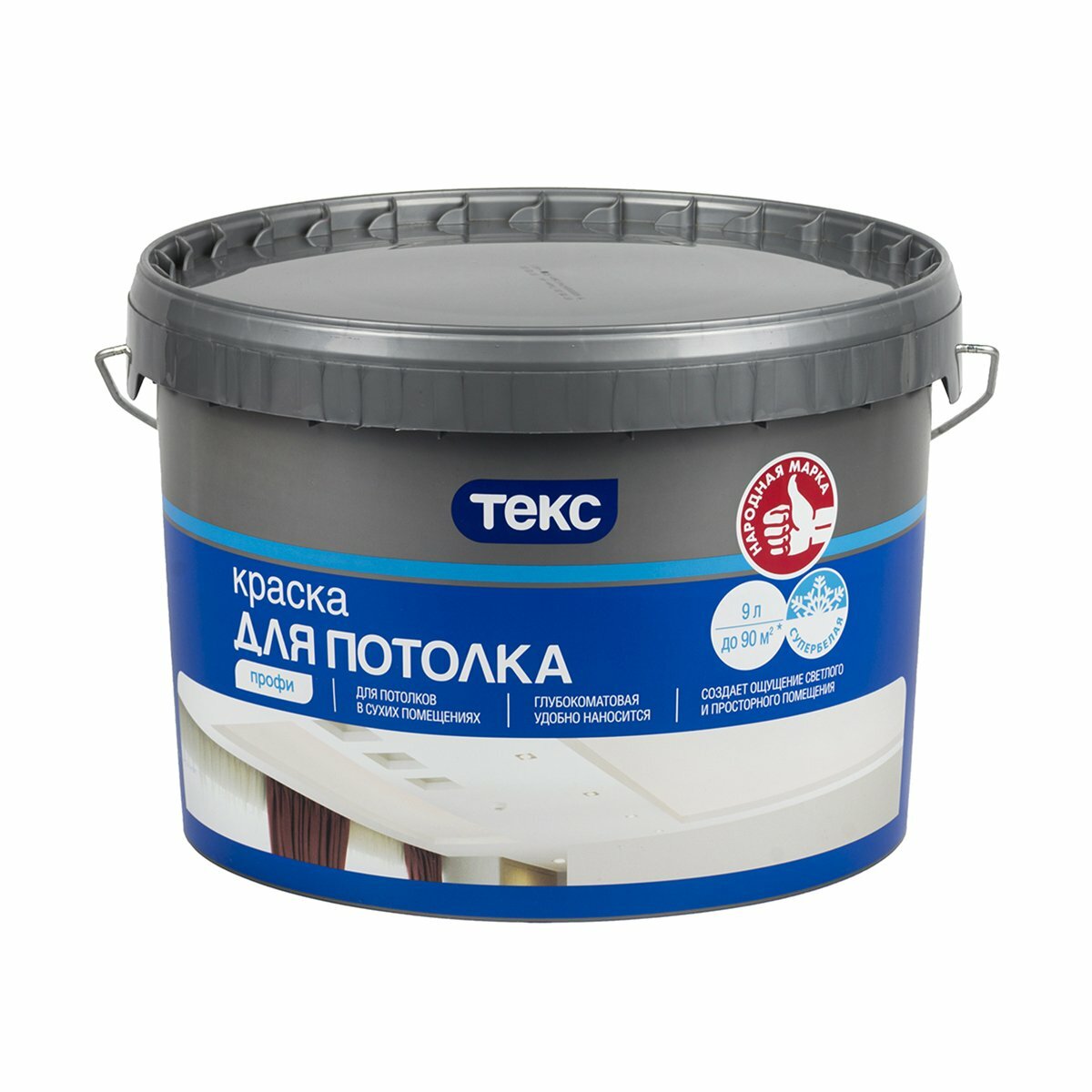Текс Для потолков краска в/д (9л) профи / текс Для потолка краска в сухих помещениях (9л) класс профи