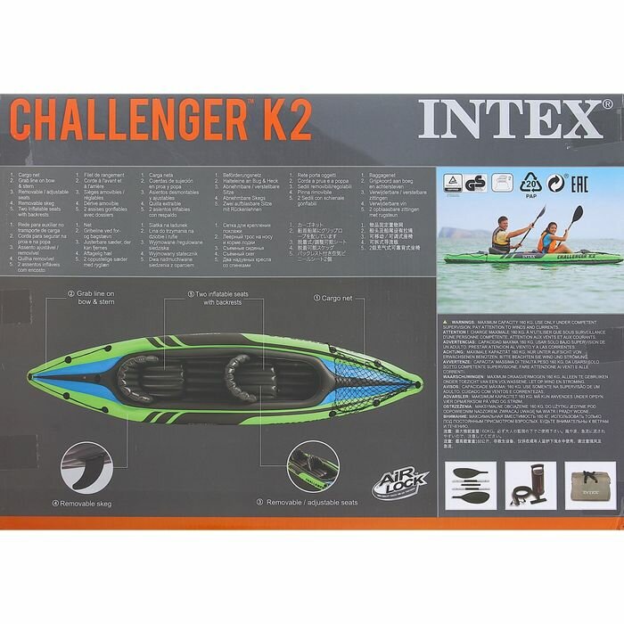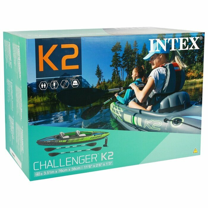 Лодка надувная INTEX CHALLENGER K2 KAYAK, 2 мест. + ручной насос, алюминиевые весла, сетка для аксессуаров