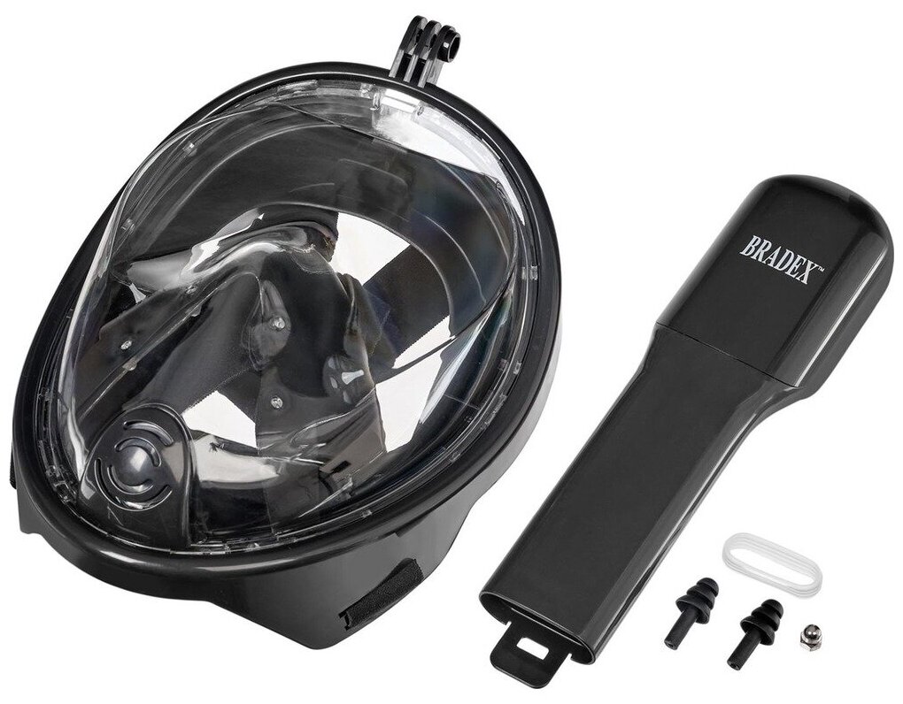 BRADEX Маска для плавания и снорклинга с креплением для экшн-камеры, черная, S,M, BRADEX