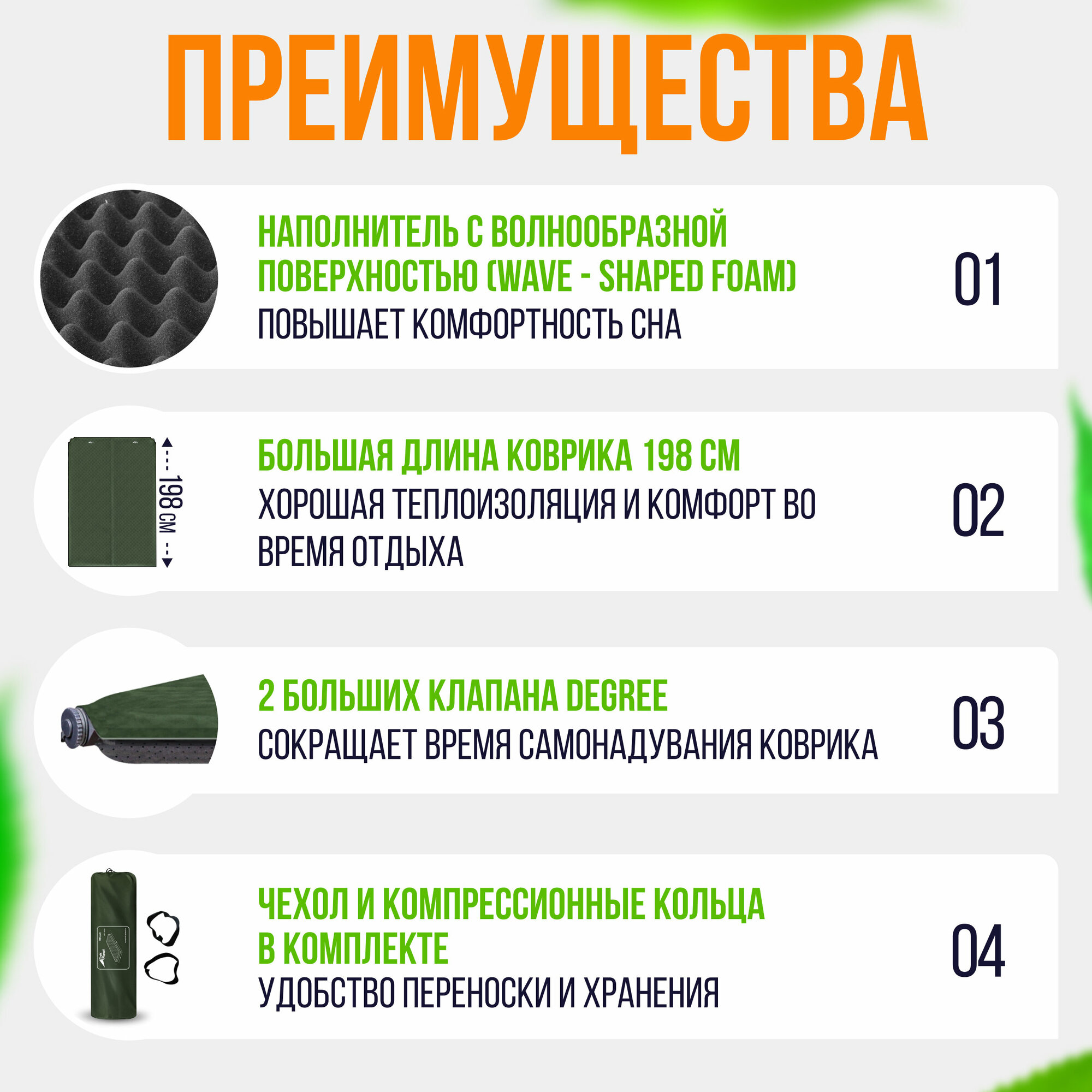 Самонадувающийся коврик Trek Planet Relax 70 Double для туризма и рыбалки. Толщина 7 см.