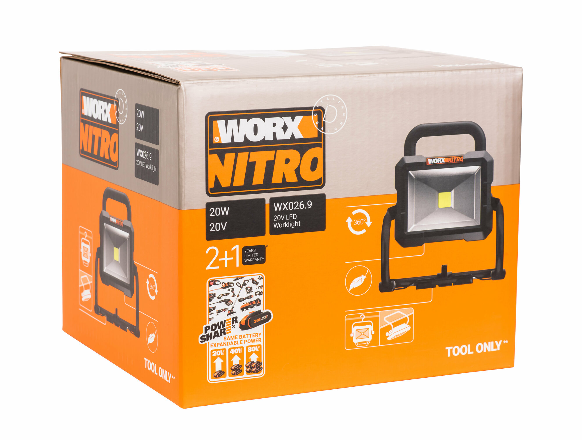 Фонарь-прожектор аккумуляторный WORX WX026.9, без АКБ и ЗУ