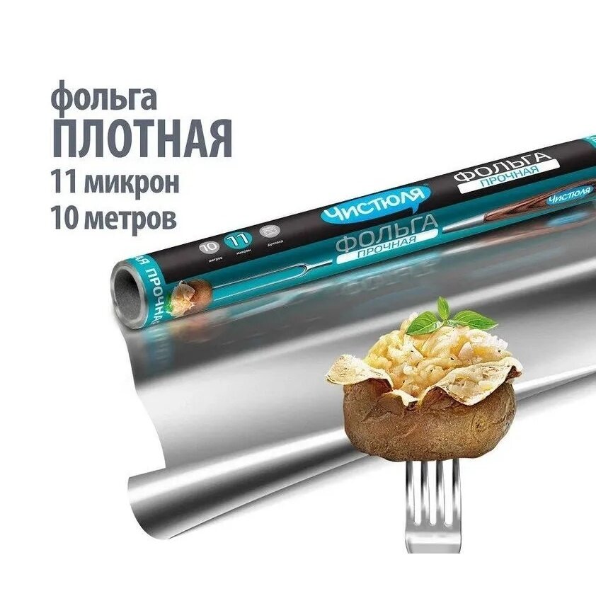 Фольга алюминиевая пищевая прочная Чистюля для запекания продуктов 10 м 29 см 11 мкм