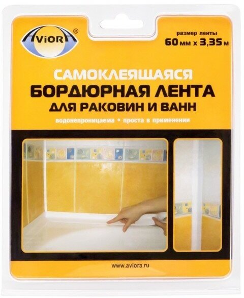 Aviora Клейкая лента бордюрная для ванн и раковин Aviora 60 мм * 3,35 м интересное: