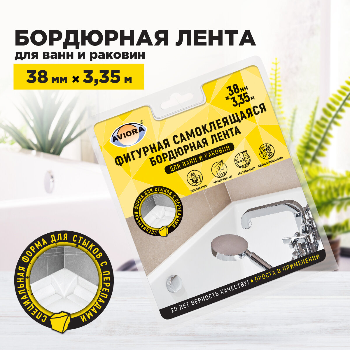 Бордюрная клейкая лента для ванн и раковин, 38 мм х 3,35 м, фигурная, AVIORA
