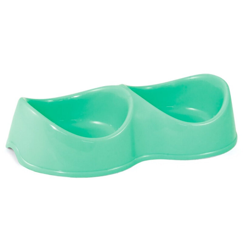 Купить Миска Гамма пластиковая двойная Бисквит, бирюзовая, 2*0,2л