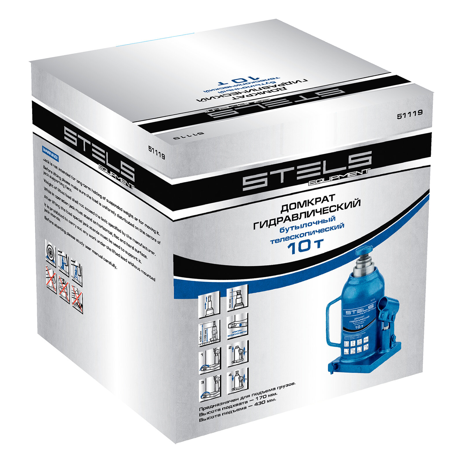 Домкрат гидравлический бутылочный Stels Equipment STELS 51119, телескопический, 10 т, H подъема 170-430 мм