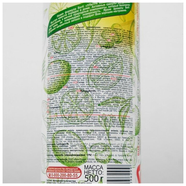 Универсальное чистящее средство Sorti Ультра комплекс, Лимон, 500 г (89-6)
