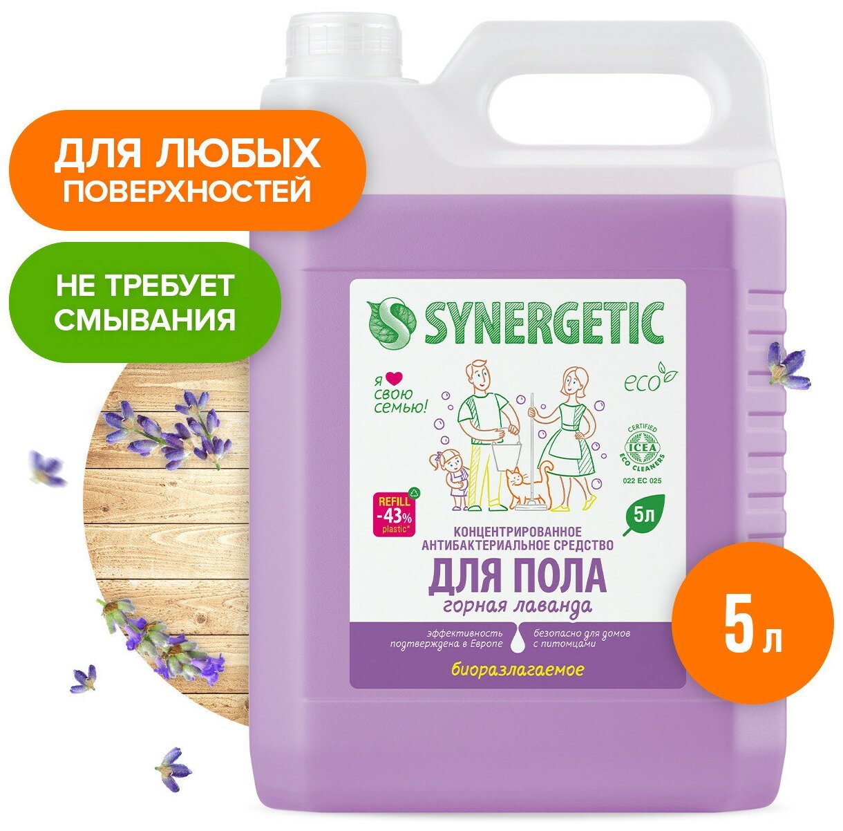 Купить Средство для мытья пола и поверхностей Synergetic "Горная лаванда", 5 л