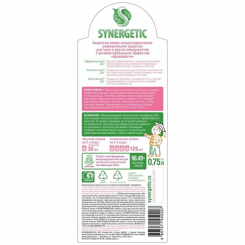 Моющее средство Synergetic Аромамагия, для мытья пола и поверхностей, 0,75 л (4607971450207)