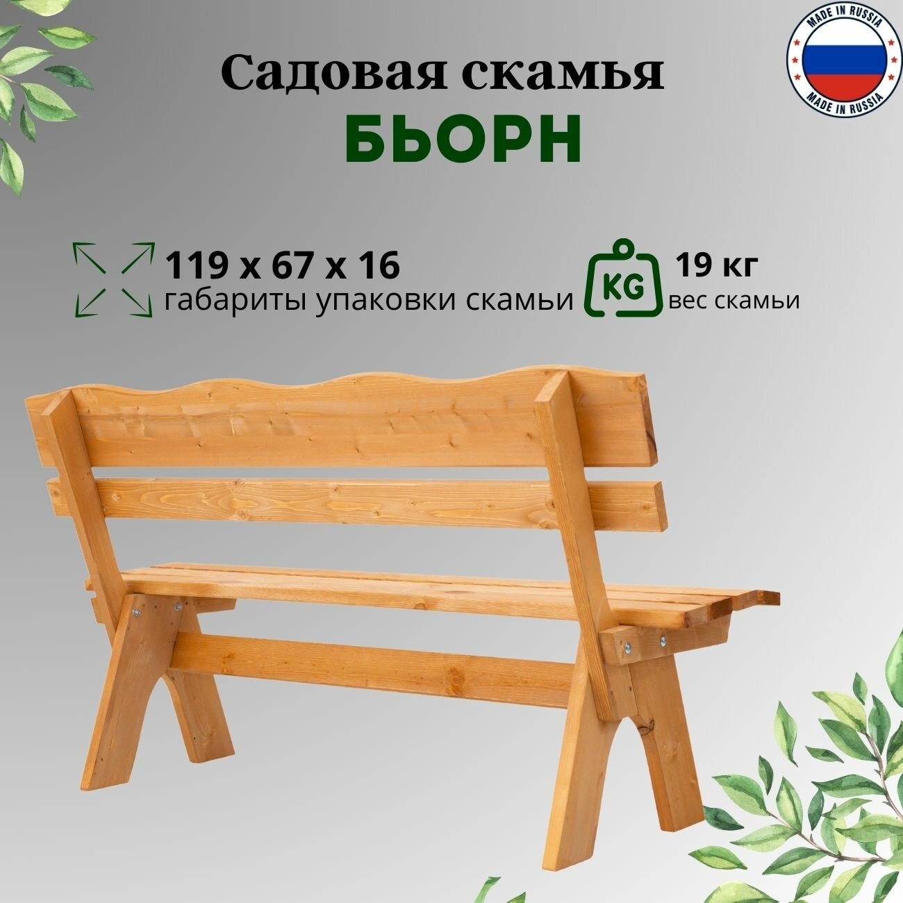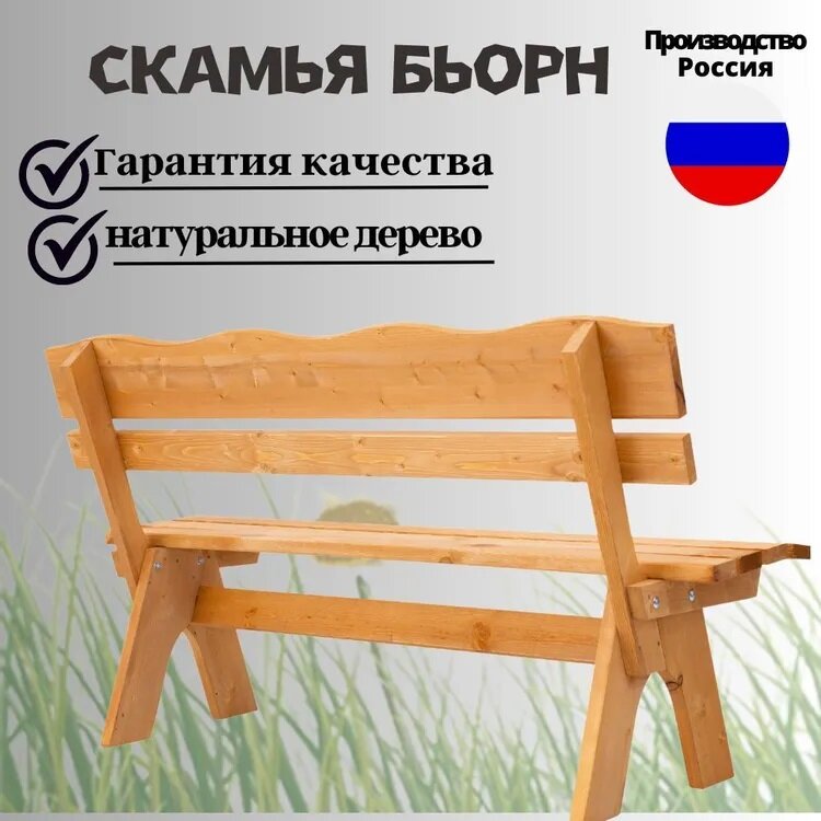 Скамейка Фотон Бьорн 118х42х86 см, массив сосны, пропитка интересное: