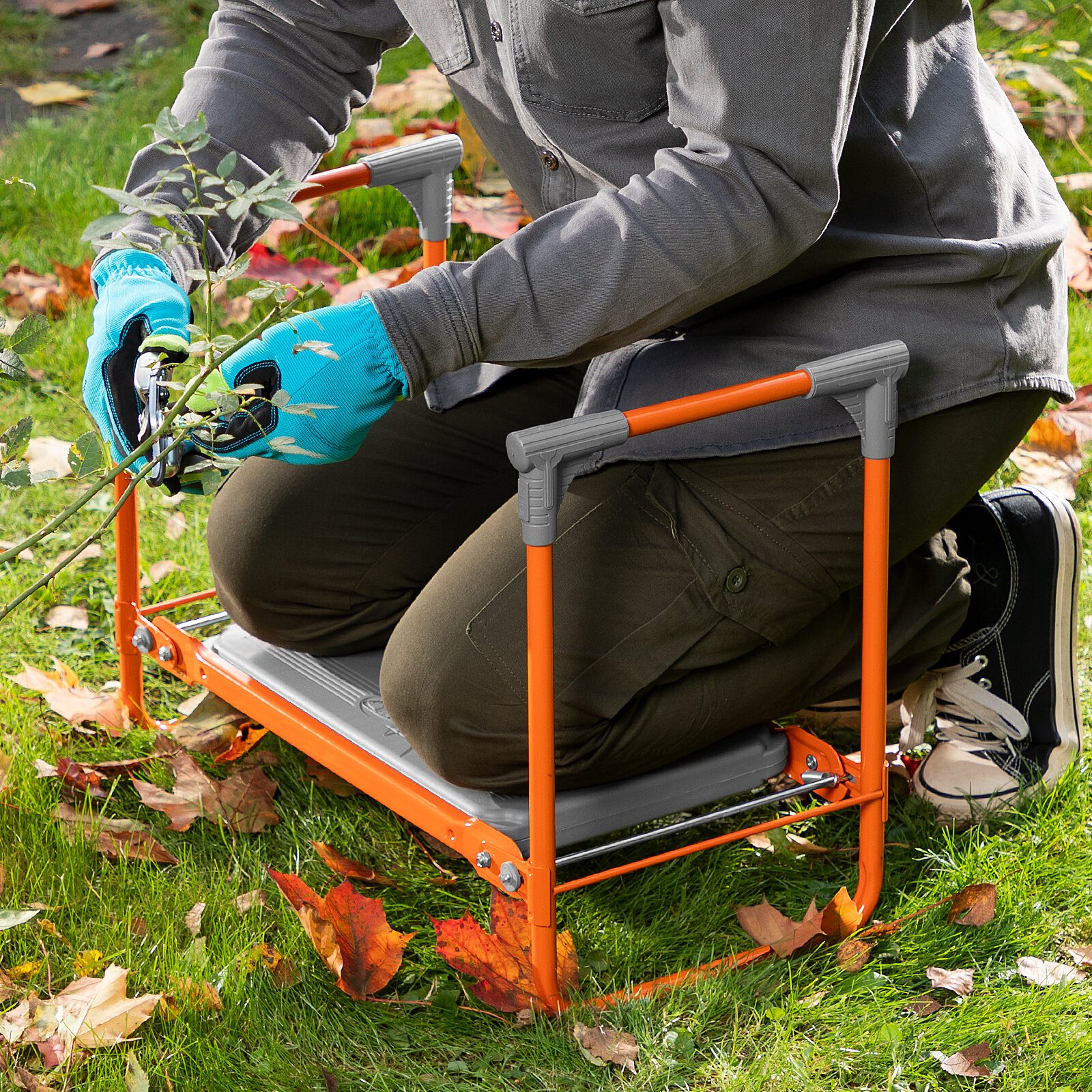 Скамейка оранжевого цвета хорошо заметна на участке. Прочная, лёгкая , удобная для переноски , имеются рукояти, за которые удобно ее держать. быстро складывается и раскладывается. Использую скамейку для множества целей. Можно сидя пропалывать грядки , а если перевернуть, то стоя на коленях. Использую как подставку , на которую можно встать и собирать вишни, сливы, яблоки, груши и т д . В яркий солнечный день , перемещаюсь с данной скамейкой как с сумочкой , по всему саду и ищу тень . Сбоку имеются поручни, на которые можно повесить различные инструменты, которые нужны для работы в саду, например , секатор, нож, и тд .В разобранном виде занимает совсем мало места. Не боится влаги, если оставите ее на улице. Советую приобретать такую скамейку , вы не пожалеете. Я очень довольна. Использовала все лето и осень. Оценка 5 |