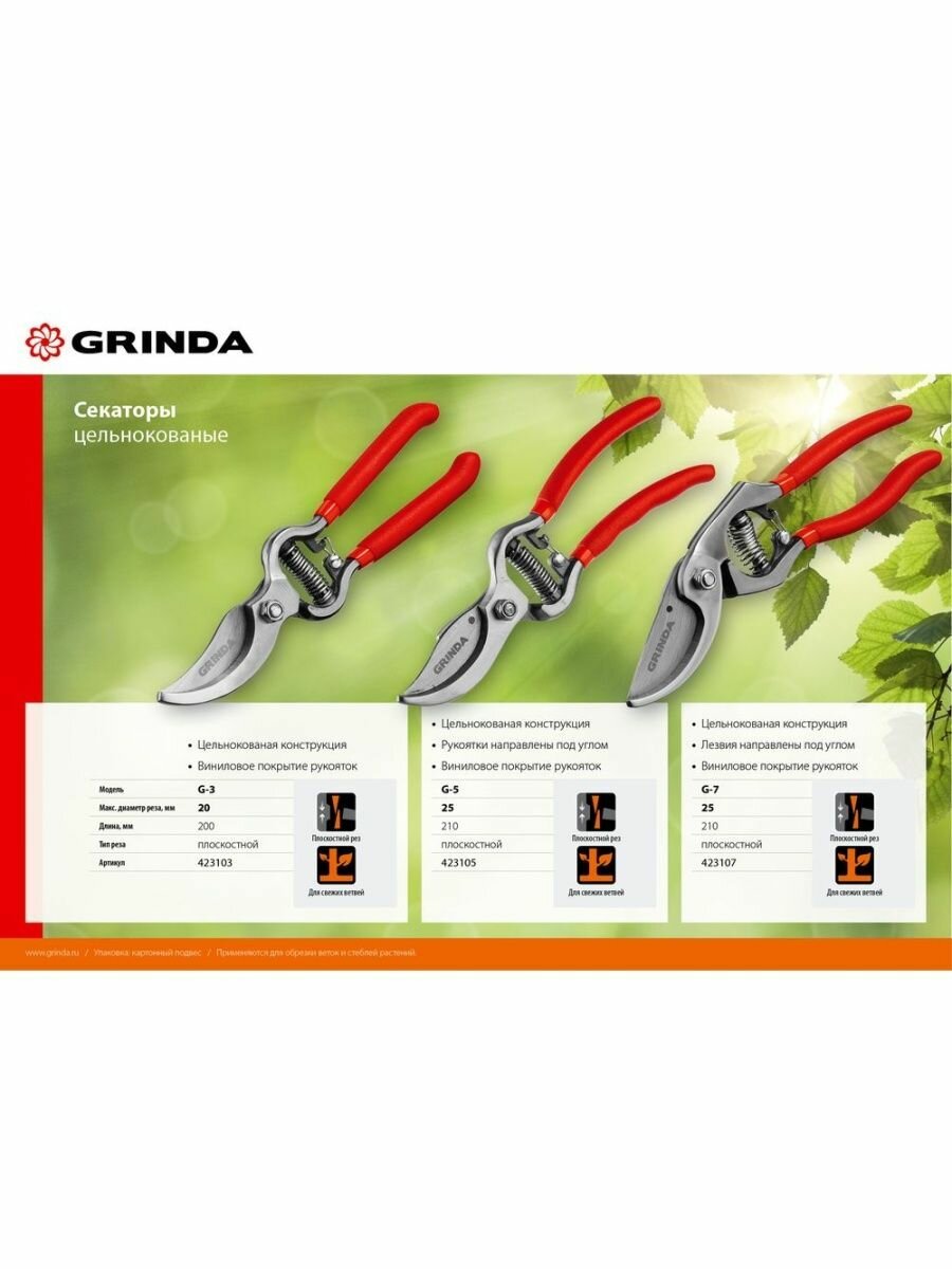 Ниже Вы можете прочитать отзывы на Плоскостной секатор Grinda 423103, ознакомится с подробными характеристиками, посмотреть интересные обзоры и фотографии на Плоскостной секатор Grinda 423103.