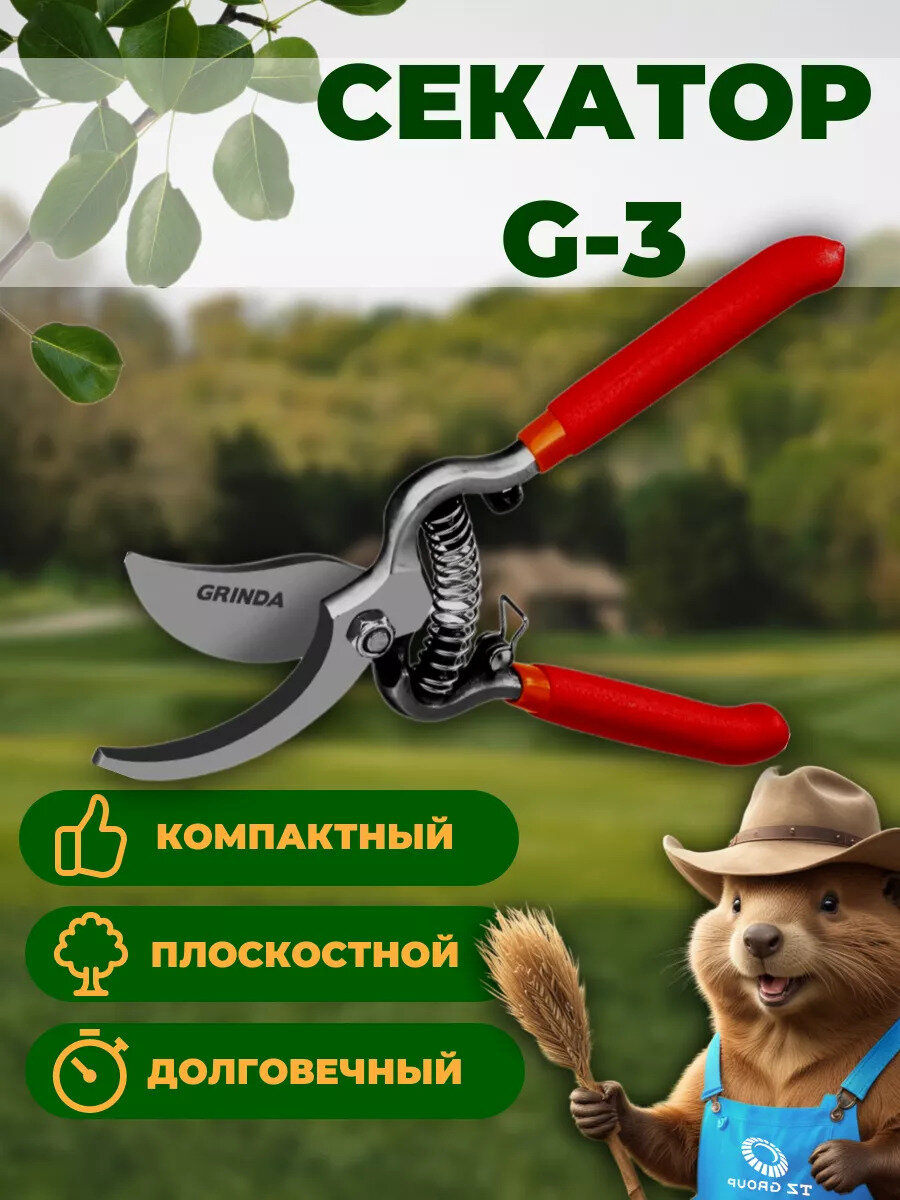 G-3 Секатор цельнокованый, плоскостной, 200мм, GRINDA {423103}