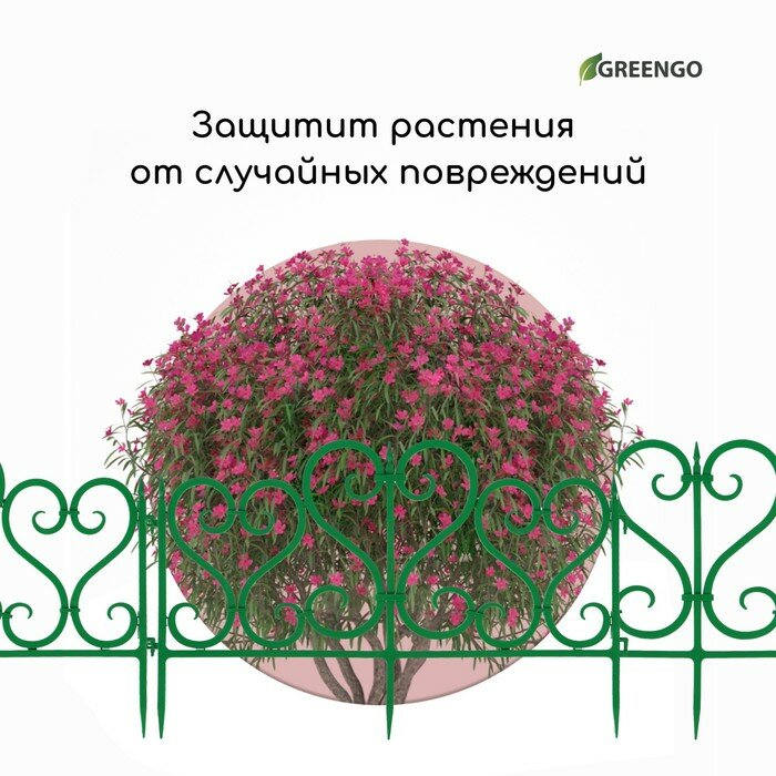 Забор декоративный МастерСад Ажурное зеленый 3 метра / Ограждение садовое, бордюр для сада, огорода, клумб, грядок / пластиковый