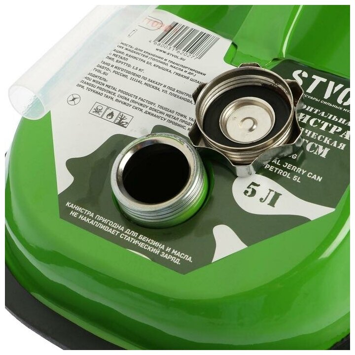 Канистра 5 л горизонтальная металлическая STVOL, с гибким носиком