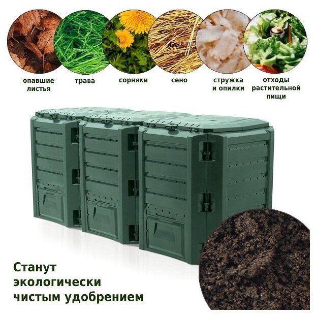 Компостер садовый Prosperplast Module 1200л, с крышкой для переработки растительных отходов, зеленый