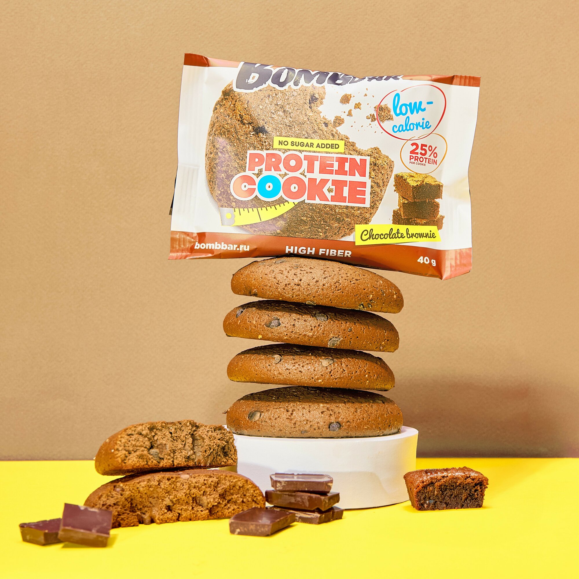 Протеиновое печенье низкокалорийное Bombbar Protein Cookie без сахара, Шоколадный брауни (12шт по 40г)