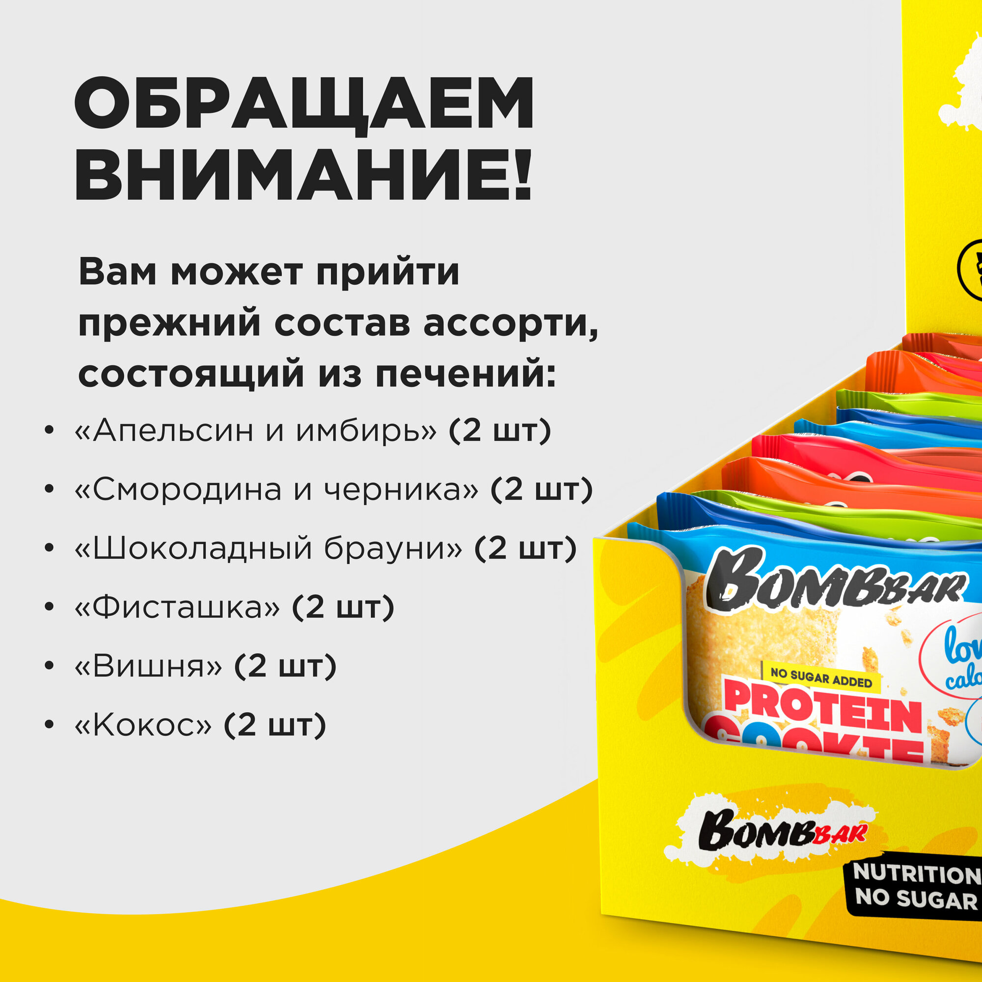 Печенье Bombbar Cookie "Ассорти", 7 вкусов, 12шт х 40г