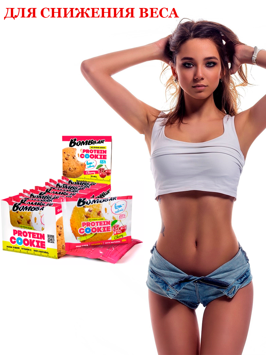 Купить Bombbar Низкокалорийное печенье Bombbar вишня, 12 штук