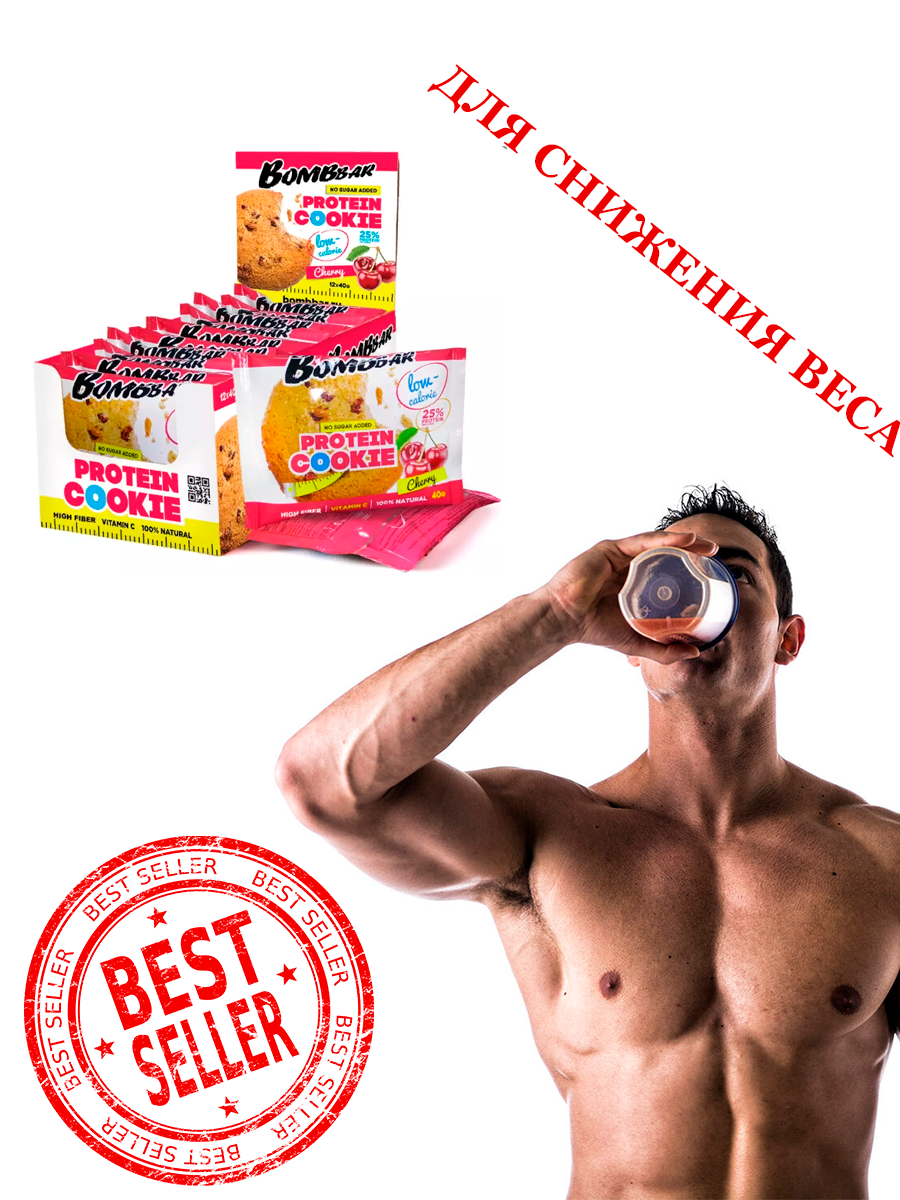 Протеиновое печенье низкокалорийное Bombbar Protein Cookie без сахара, Вишня (12шт по 40г)