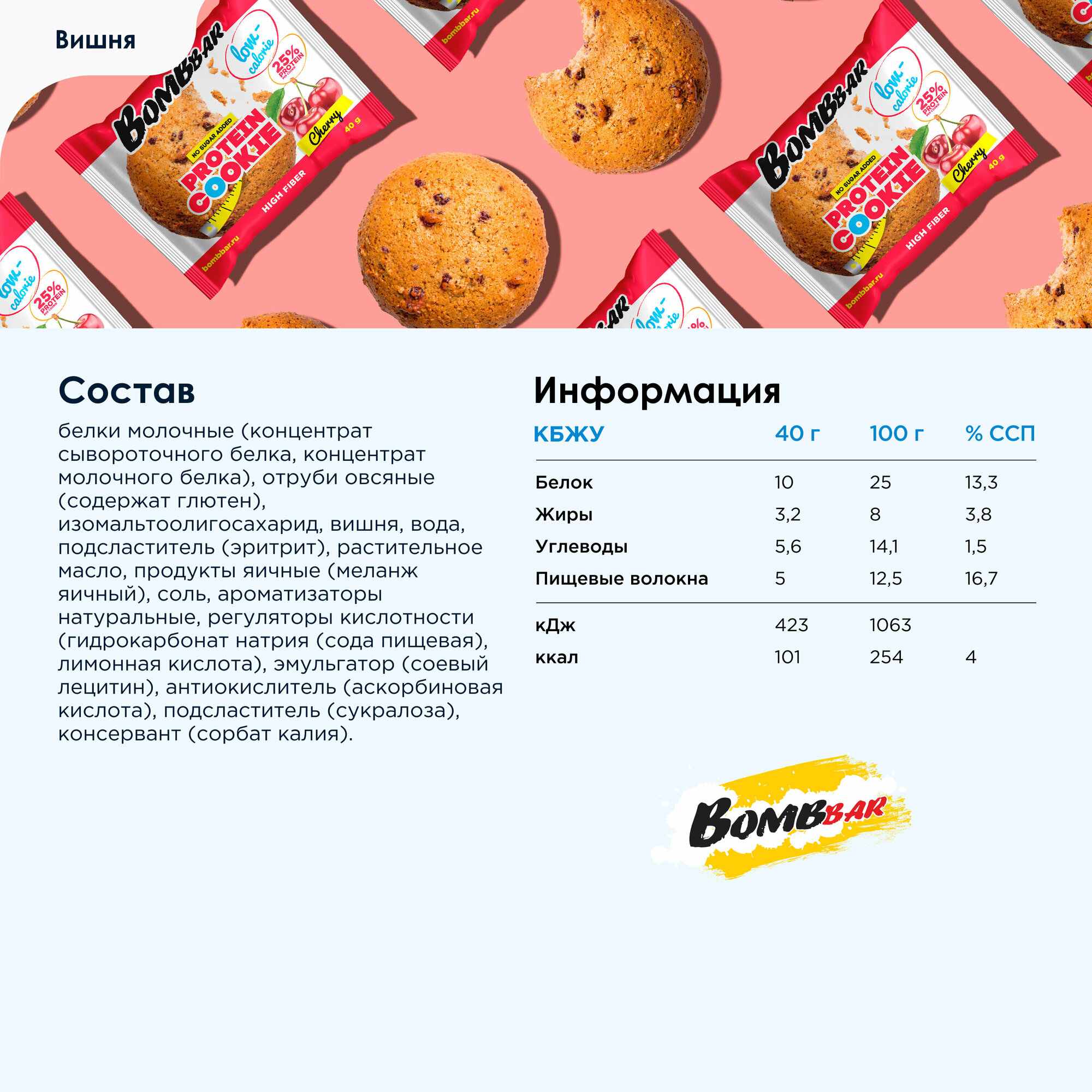 СохранитьBombbar Низкокалорийное печенье Bombbar вишня, 12 штук интересное:
