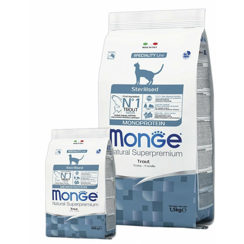 Сухой корм Monge Cat Monoprotein Sterilised Trout для стерилизованных кошек, с форелью, 1,5 кг