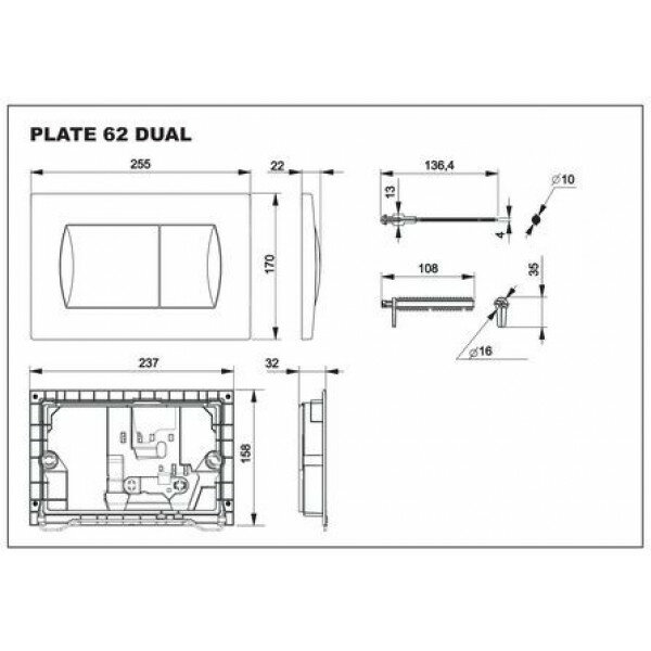Кнопка д/инст PL62 B хром глянц Roca 8901160B1