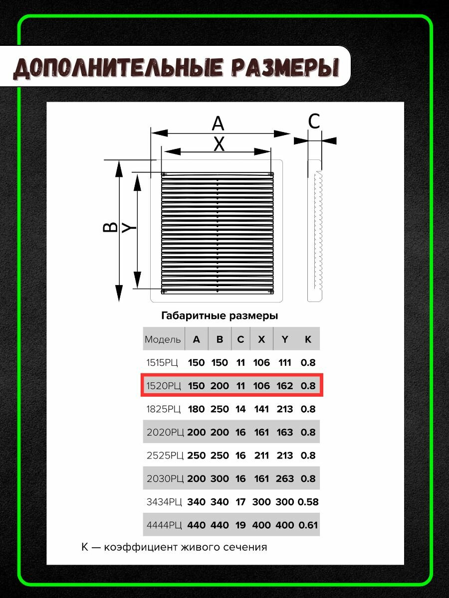 Решетка вентиляционная ERA 1520 РЦ, 150x200 мм, цилиндрическая, с сеткой, неразъемная