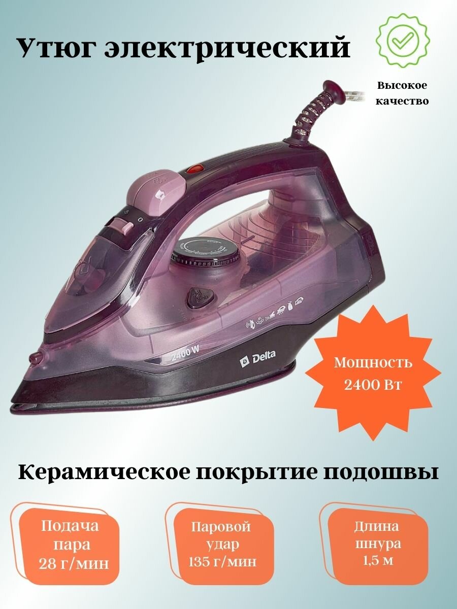 Утюг DELTA DL-353 черный с фиолетовым: 2400 Вт, керамика, антинакипь, самоочистка