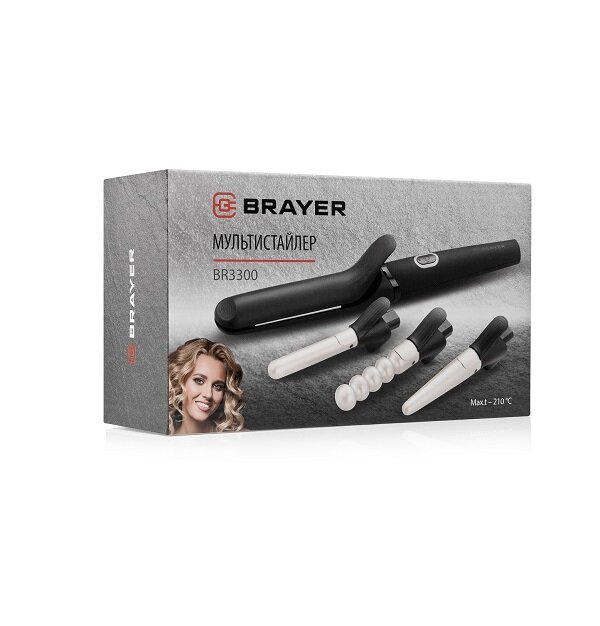 3300BR Мультистайлер BRAYER, PTC, LED (160-210), Выпрямитель и 3 насадки для завивки, Автооткл.