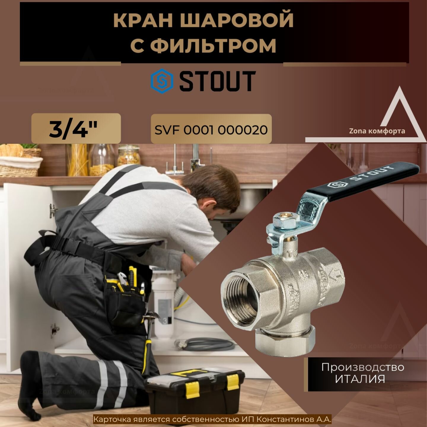 Купить Кран шаровый 3/4 с фильтром Stout рычаг SVF 0001 000020