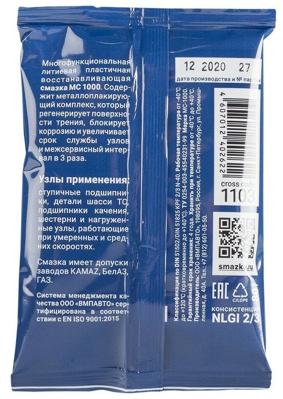 Смазка Мс-1000 Многоцелевая 400гр. Вмпавто 1105 ВМПАВТО арт. 1105