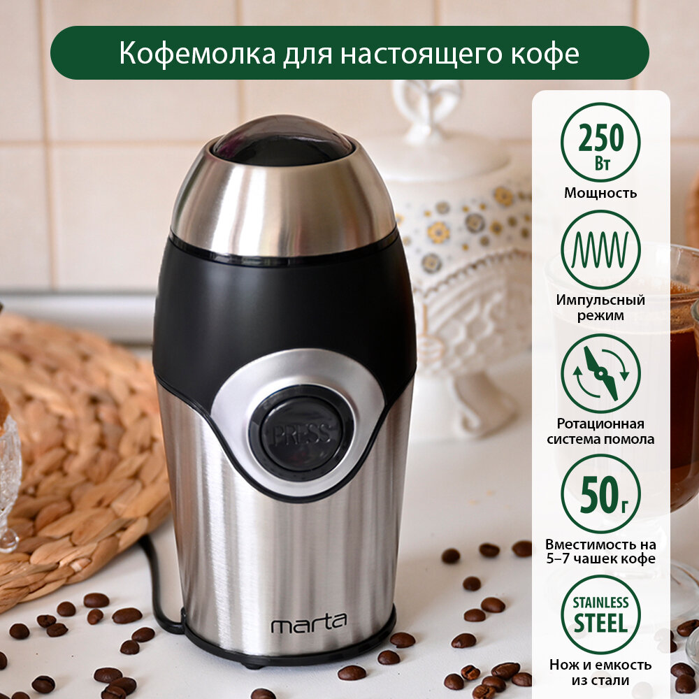 Купить Кофемолка MARTA MT-2169 черный жемчуг