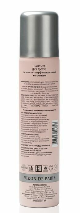 Дезодорант парфюмированный для женщин Дух духов "Шансита"/"SHANSITA" 75 мл