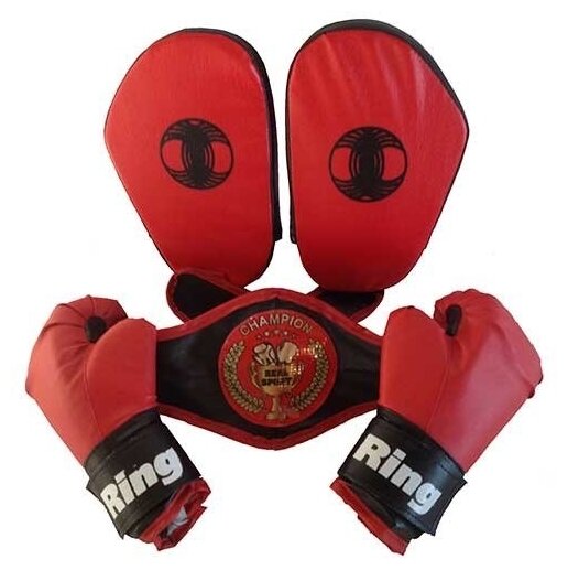 Набор боксёрский детский REALSPORT лидер (перчатки, лапы, пояс чемпиона)