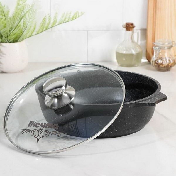Жаровня "Мечта" 3л Гранит с антипригарным покрытием с крышкой, можно мыть в посудомоечной машине