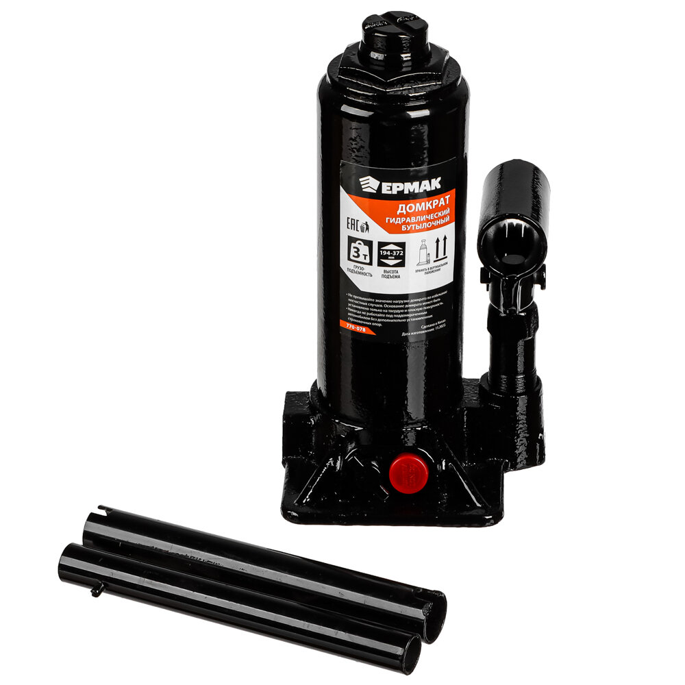 Ермак Домкрат гидравлический бутылочный 3 т, в кейсе, высота подъема 194-372мм