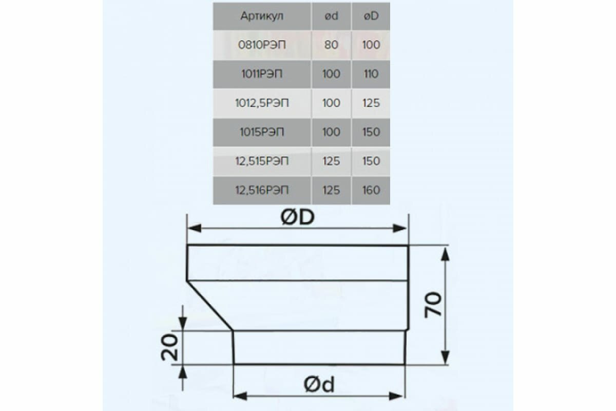 ERA Соединитель-редуктор эксцентриковый ERA 1015РЭП d100х150 мм пластиковый