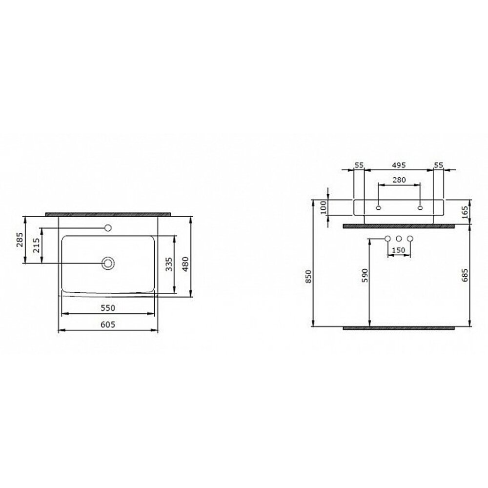 | Отверстия под смеситель | 1, расположение в центре |
