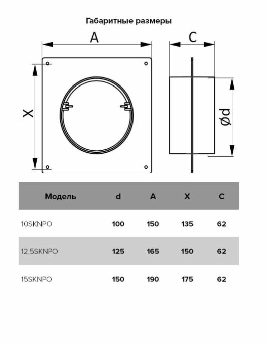 10SKNPO Соединитель круглых воздуховодов D100 с обратным клапаном на накладной пластине 150х150 ЭРА, пластик
