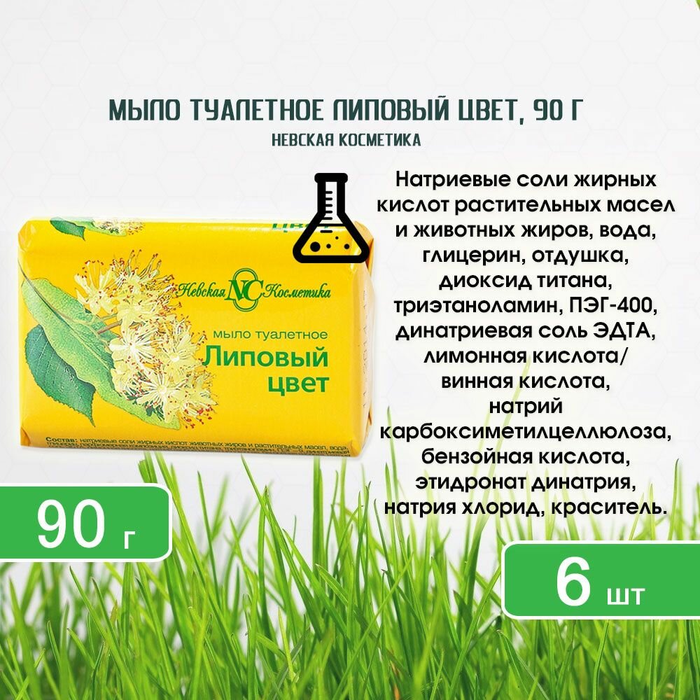 Мыло туалетное Невская Косметика Липовый цвет, 90г x 6 шт