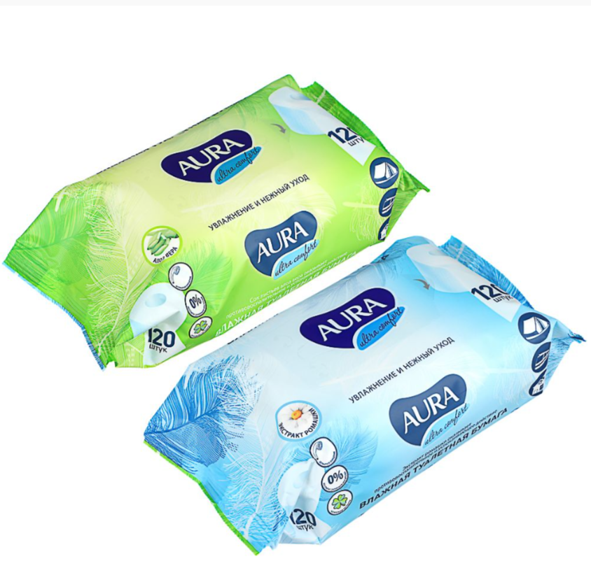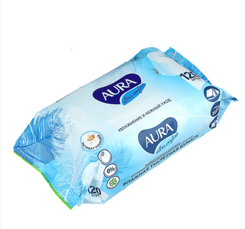 СохранитьВлажная туалетная бумага Aura с ароматом ромашки/элоэ 120 шт в пачке, 1 упак интересное: