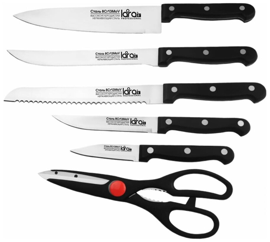 Купить Набор ножей Lara 7 предметов: деревянная подставка + 5 ножей + ножницы LR05-53