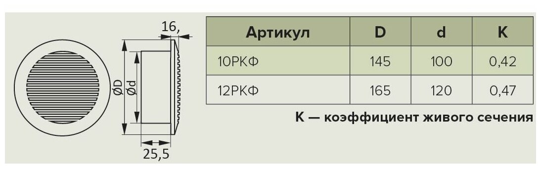 10РКФ, Решетка вентиляционная круглая D145 вытяжная АБС с фланцем D100