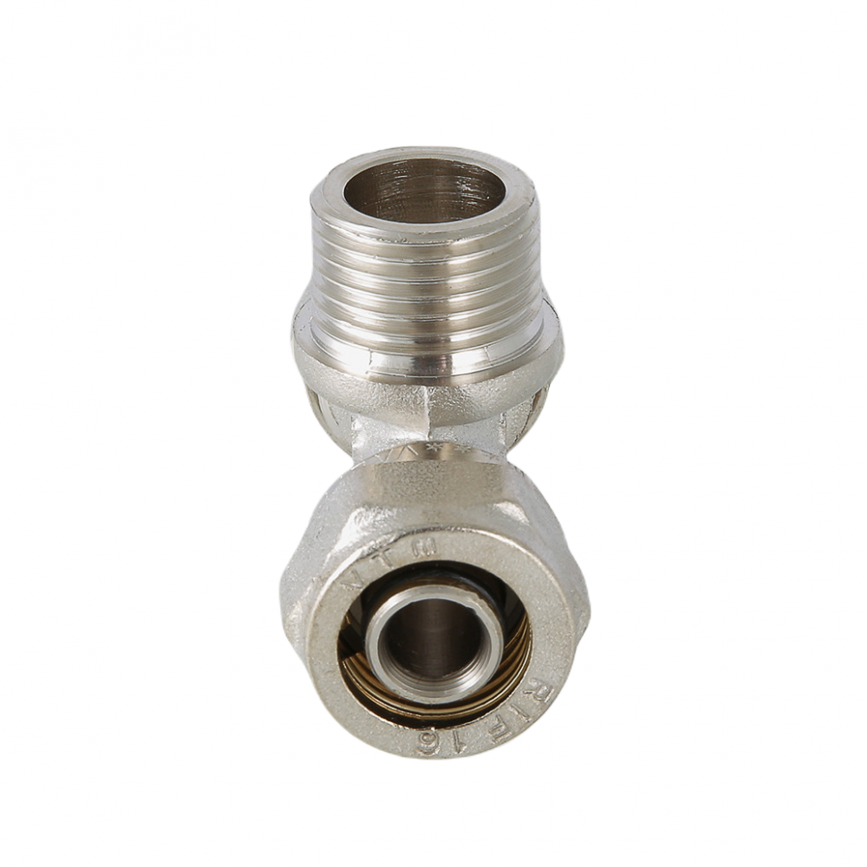 Тройник обжимной Valtec наружная резьба 20х1/2" мм никелированная латунь VTm.333.N.200420