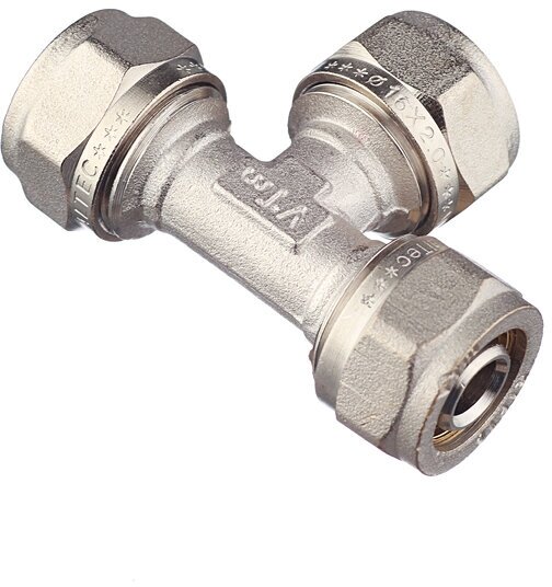 Тройник обжимной Valtec 16 мм никелированная латунь VTm.331.N.161616