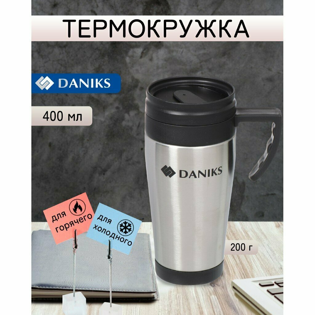 DANIKS Термокружка нерж сталь, пластик, 0.4 л, , колба пластик, серебр, sl-109 306879