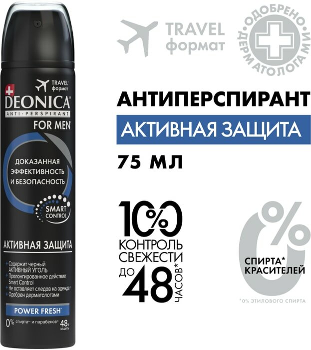 DEONICA FOR MEN Антиперспирант Активная защита, 75 мл (спрей)